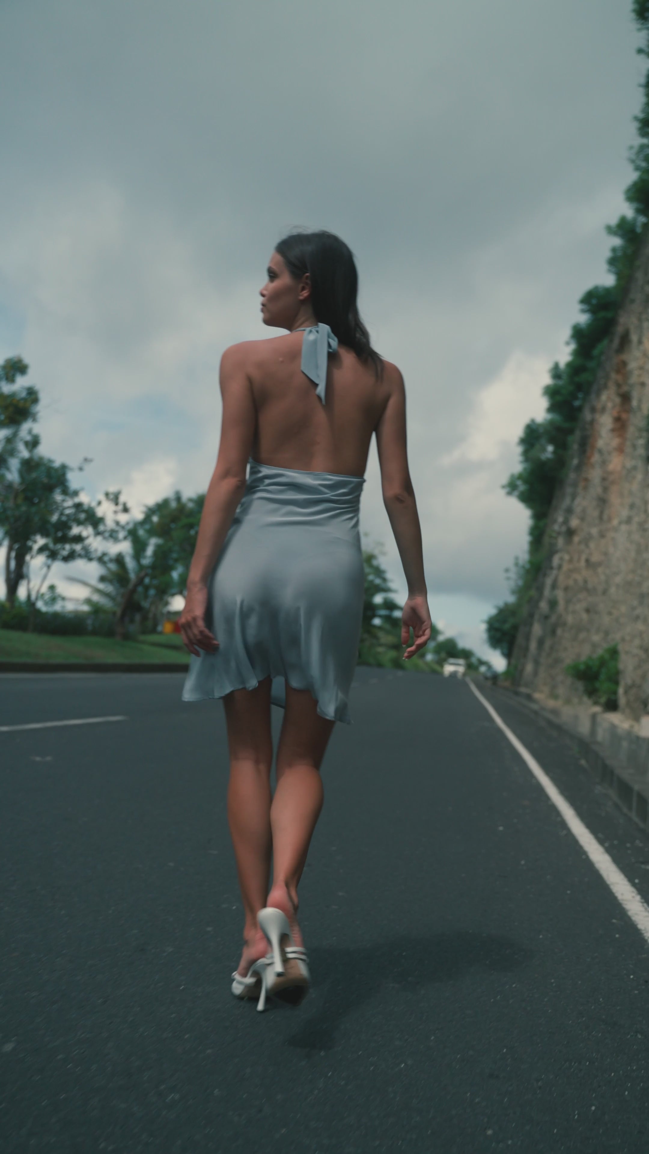 Mini length with a tailored silhouette, this halter dress accentuates your figure while providing a comfortable fit. Slip on dress with adjustable tie neckline.